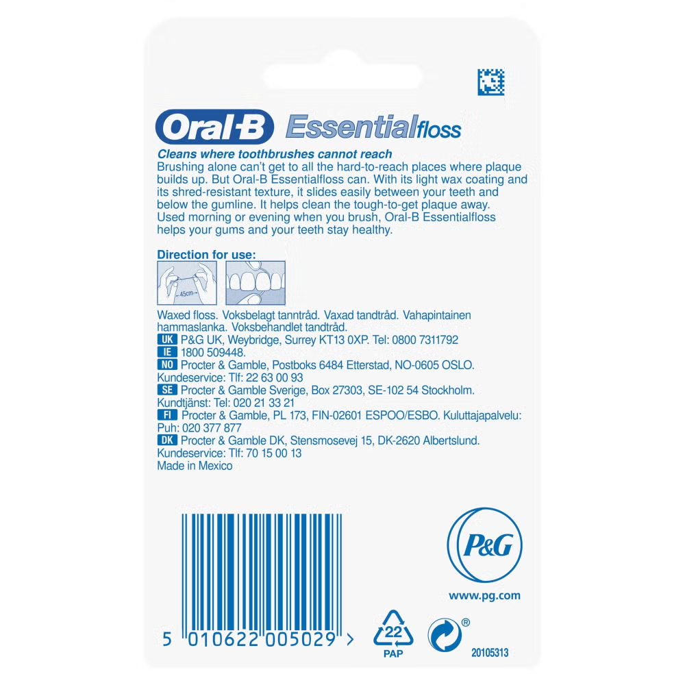 Oral-B Essential dental floss provides advanced flossing action for a fresh, clean feeling in your mouth. Its advanced, 2-layered design provides superior strength, easy handling, and comfort.