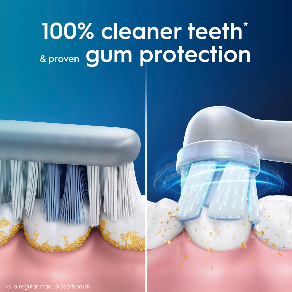 he Oral-B iO 3 electric toothbrush features Oral-B’s best technology, combining a dentist-inspired round brush head with micro-vibrating bristles for a professional purifying clean feel at home. The Smart Pressure Sensor helps prevent you from brushing either too hard or too softly to better protect your gums. Gum Guard alerts you to time spent brushing with too much pressure. Replace your Oral-B iO toothbrush head every 3 months for the best results.