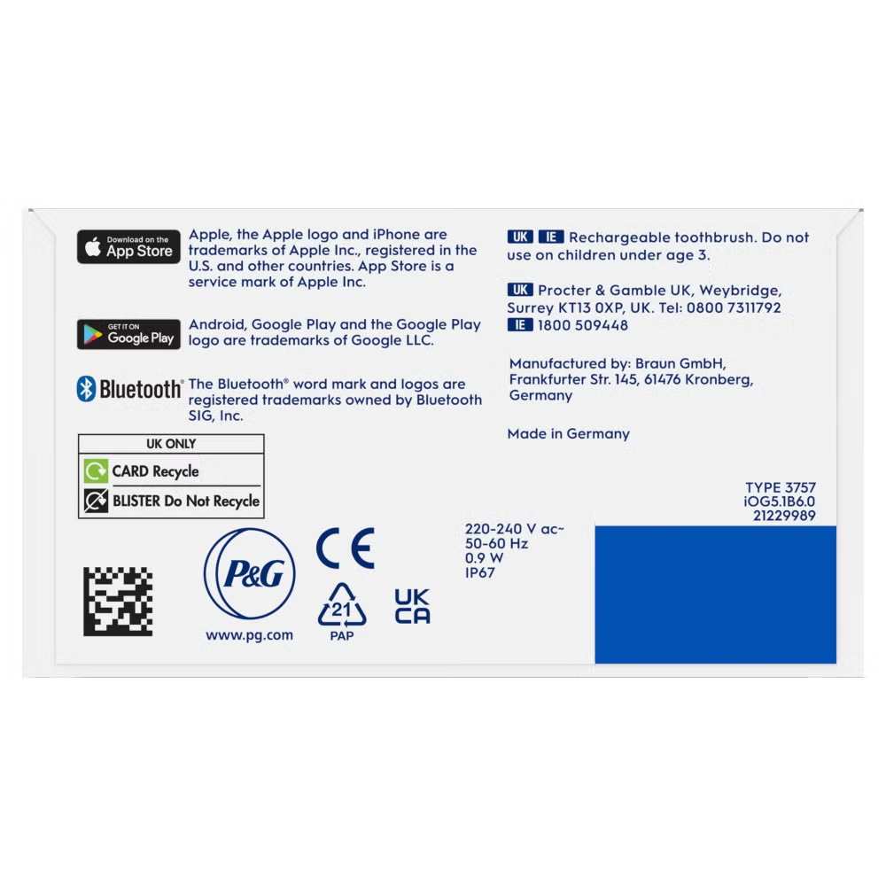 The iO 5 electric toothbrush features Oral-B’s best technology, combining a dentist-inspired round brush head with micro-vibrating bristles for a professional purifying clean feel at home. The Smart Pressure Sensor helps prevent you from brushing either too hard or too softly to better protect your gums. A.I. Brushing Recognition recognises your brushing style and guides you to better brushing every day. Connects to the free Oral-B App for real-time brush tracking & guidance across 6 brushing zones. Replace your Oral-B iO toothbrush head every 3 months for the best results.