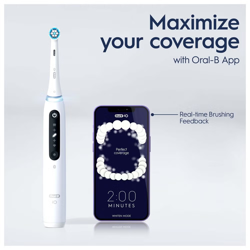 The iO 10 electric toothbrush with the revolutionary iO Sense smart charger personalises your brushing with real-time feedback, guiding you
