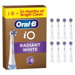 he Oral-B iO Series Radiant White Replacement Brush Heads combine powerful but gentle micro-vibrations with our unique, dentist-inspired round brush head design for a professional clean feeling every day. Designed exclusively for Oral-B iO electric toothbrush handles, the Radiant White brush heads help remove up to 100% more plaque than a regular, manual toothbrush, leaving teeth feeling clean and bright. The Radiant White brush head uniquely combines perfect angle bristles with polishing petals to contact and polish all areas and remove surface stains for a whiter smile. Dentists recommend changing your toothbrush head every 3 months for best results. Enjoy superior cleaning power with the only refill brush heads designed exclusively for – and guaranteed to fit – your Oral-B iO electric toothbrush.