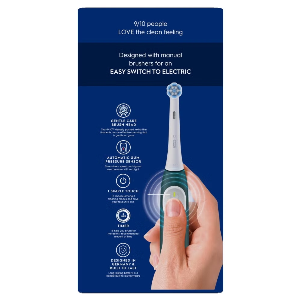 The iO 3 electric toothbrush features Oral-B s best technology, combining a dentist-inspired round brush head with micro-vibrating bristles for