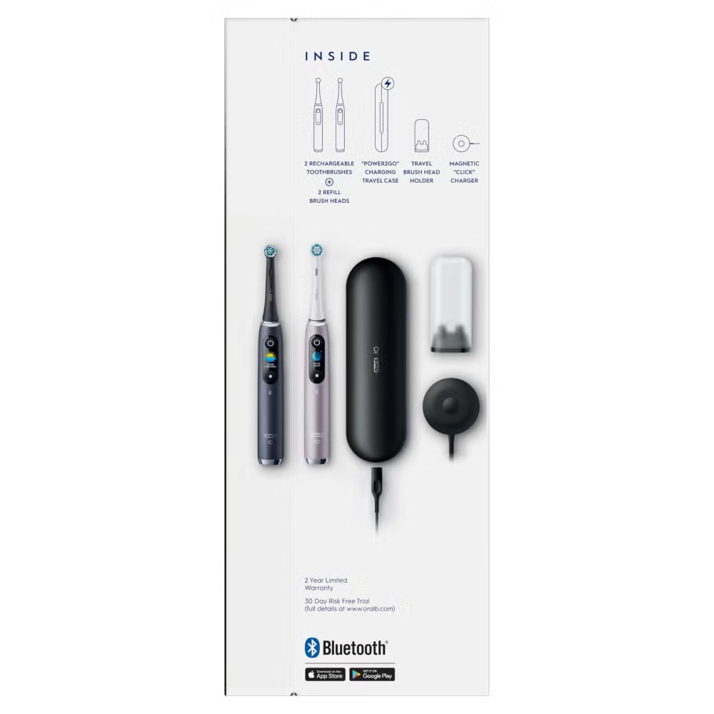 Home All products Compare Models Why an Electric Toothbrush? Oral-B iO9 Duo Pack of Two Electric Toothbrushes, Black Lava & Rose Quartz