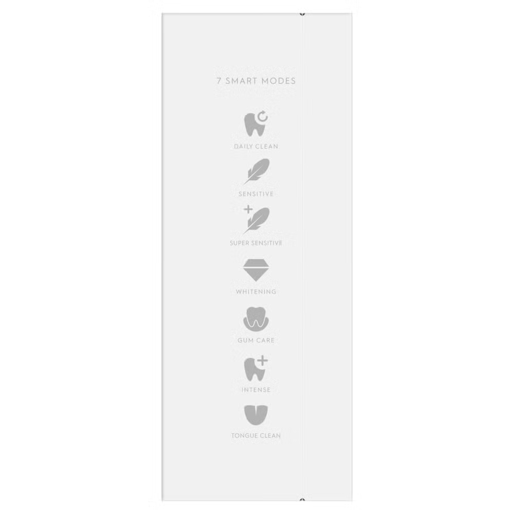 A close up on two iO9 toothbrushes with 7 icons representing the cleaning modes