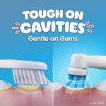 The small, kid-sized brush head includes the softest bristles Oral-B has ever made for milk teeth. They act like tiny cushions to prevent harshness yet give an excellent clean. The round brush head gently surrounds each tooth as it cleans. Hold the brush in place for a few seconds on each tooth end let it do all the work.